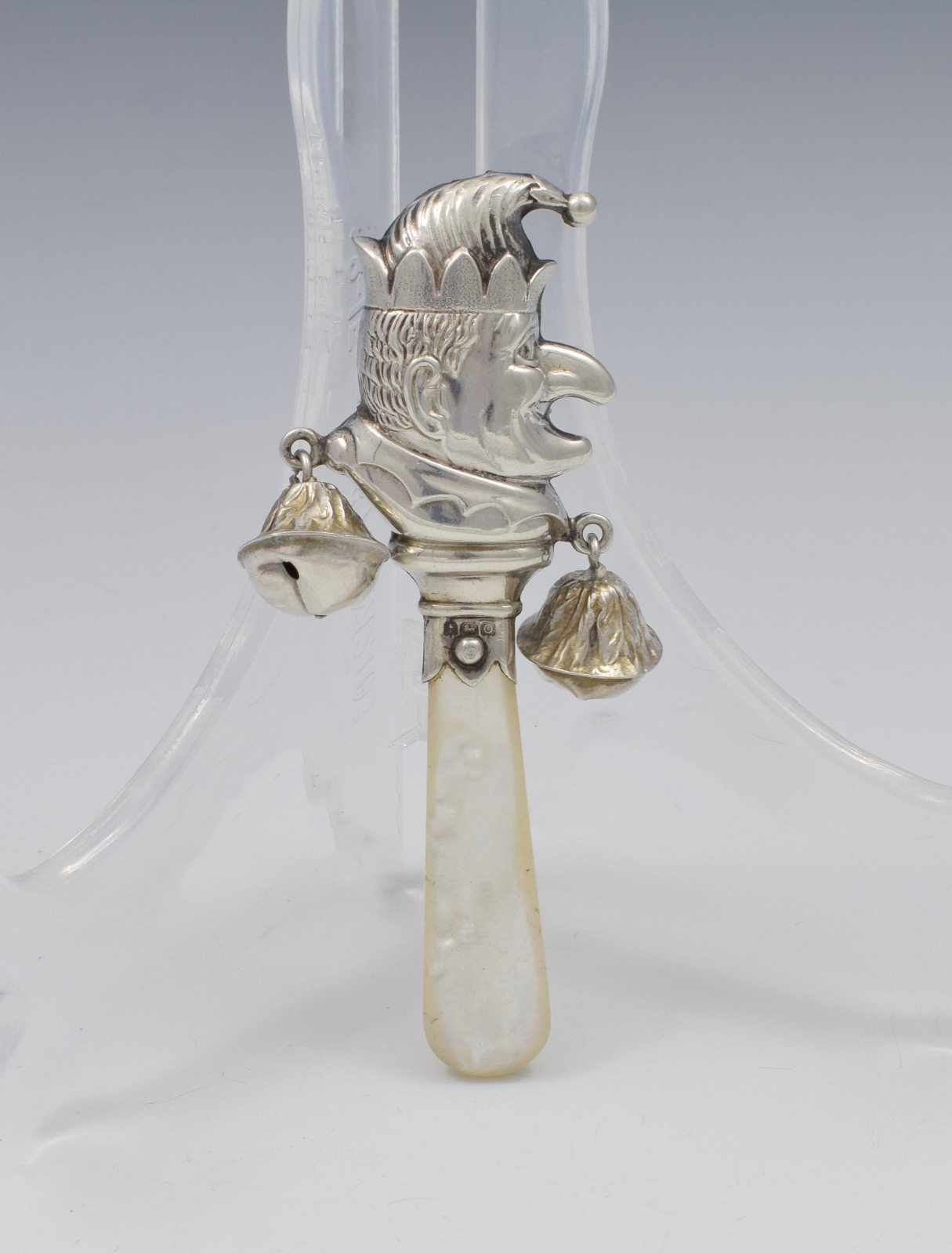 Mr Punch Rattle Silver & Mother of Pearl 1938