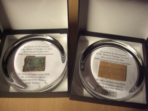 Ms Victory Twin Set of Copper & Oak Crystal Glass Paperweights + Coa Great Gif