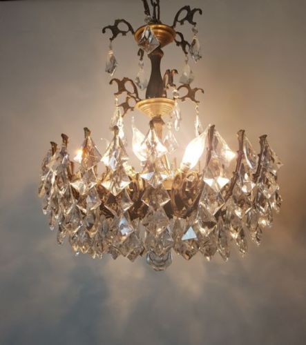 Multi Arm Spider Crystal & Aged Brass Chandelier; Professionally Rewired