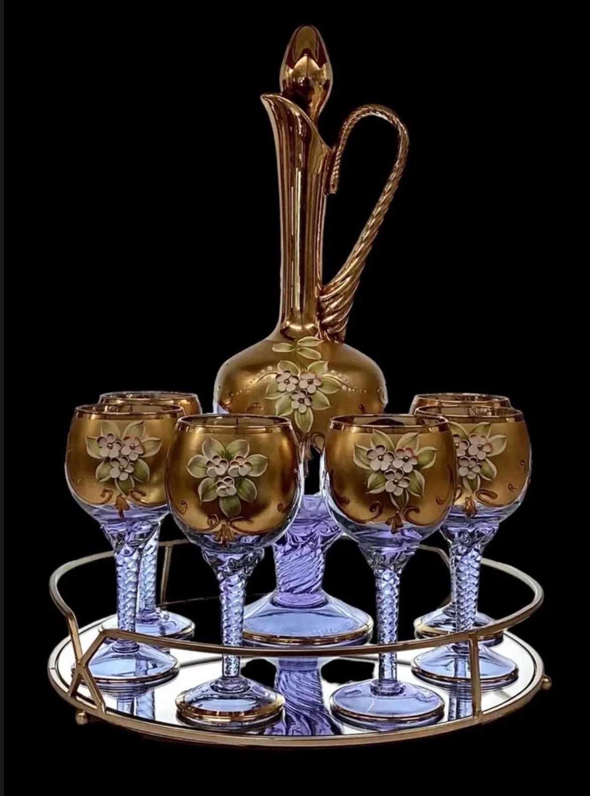 Murano Glass Decanter Set Neodymium by Gino Mazzuccato