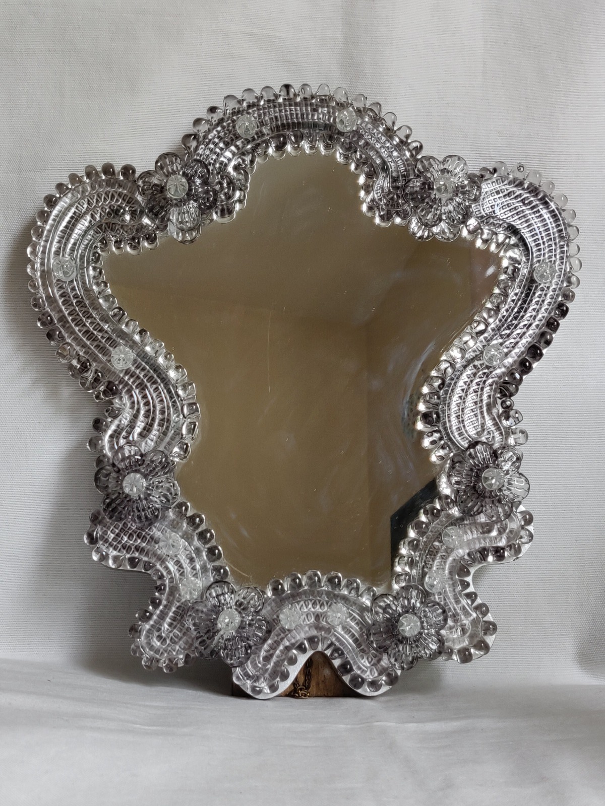 Murano Italian Venetian Art Glass Vanity / Wall Mirror with Clear Floral Accents