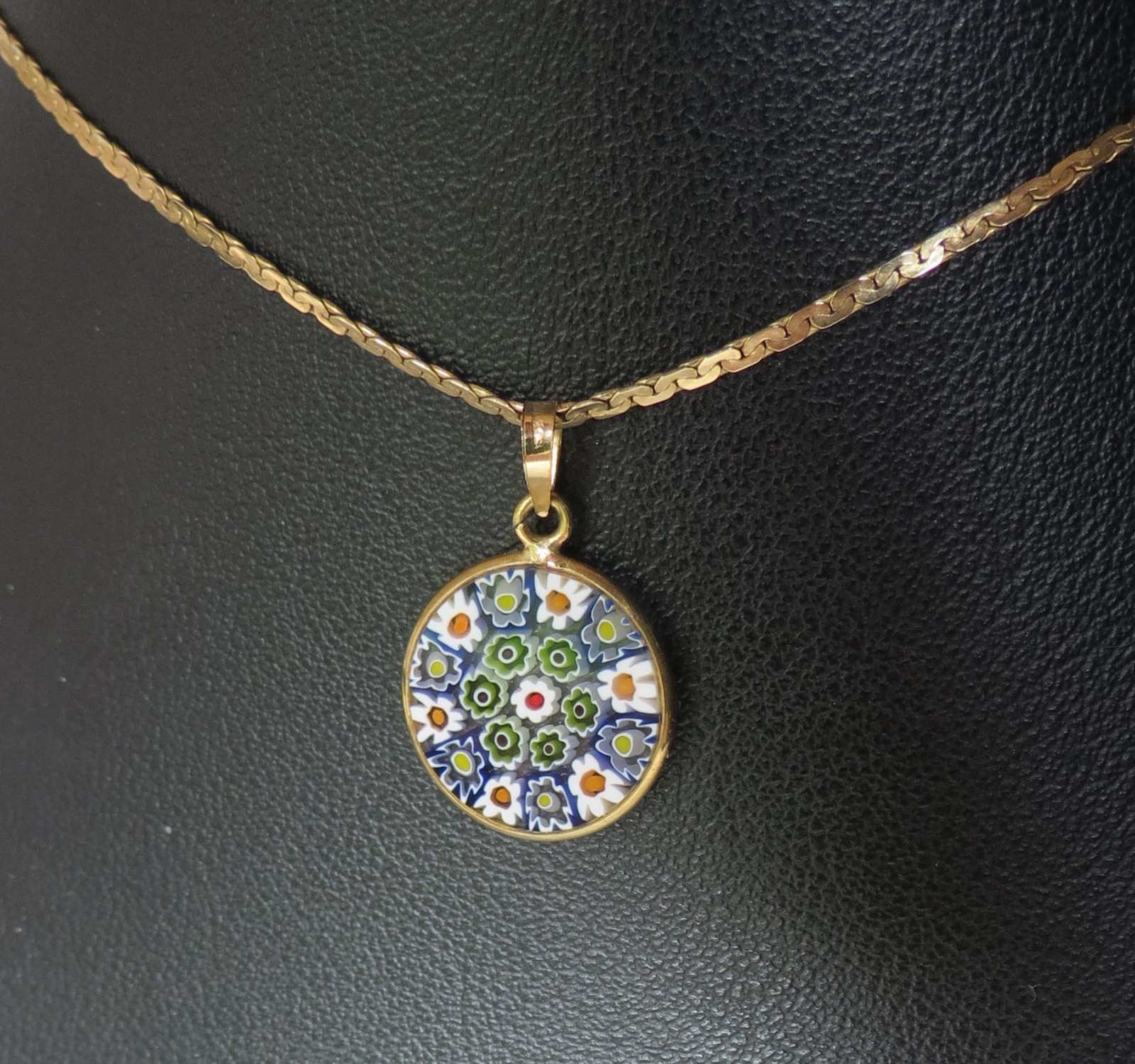 Murano Millefiori Enamel & Gold Pendant on Chain - ca. 1980 (1 of 16)