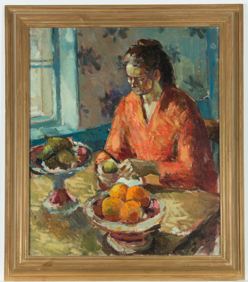 Muriel Archer - Framed Oil, Study of a Woman Cutting Fruit