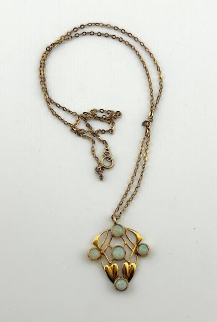 German Jugendstil Silver & Chrysoprase Pendant Necklace