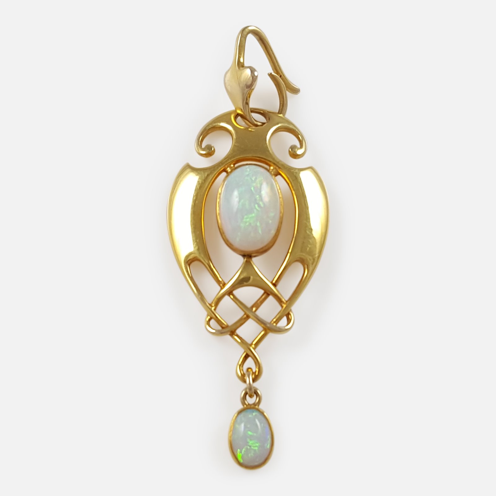 Murrle Bennett & Co. Art Nouveau Celtic Revival 15 Carat Gold and Opal Pendant