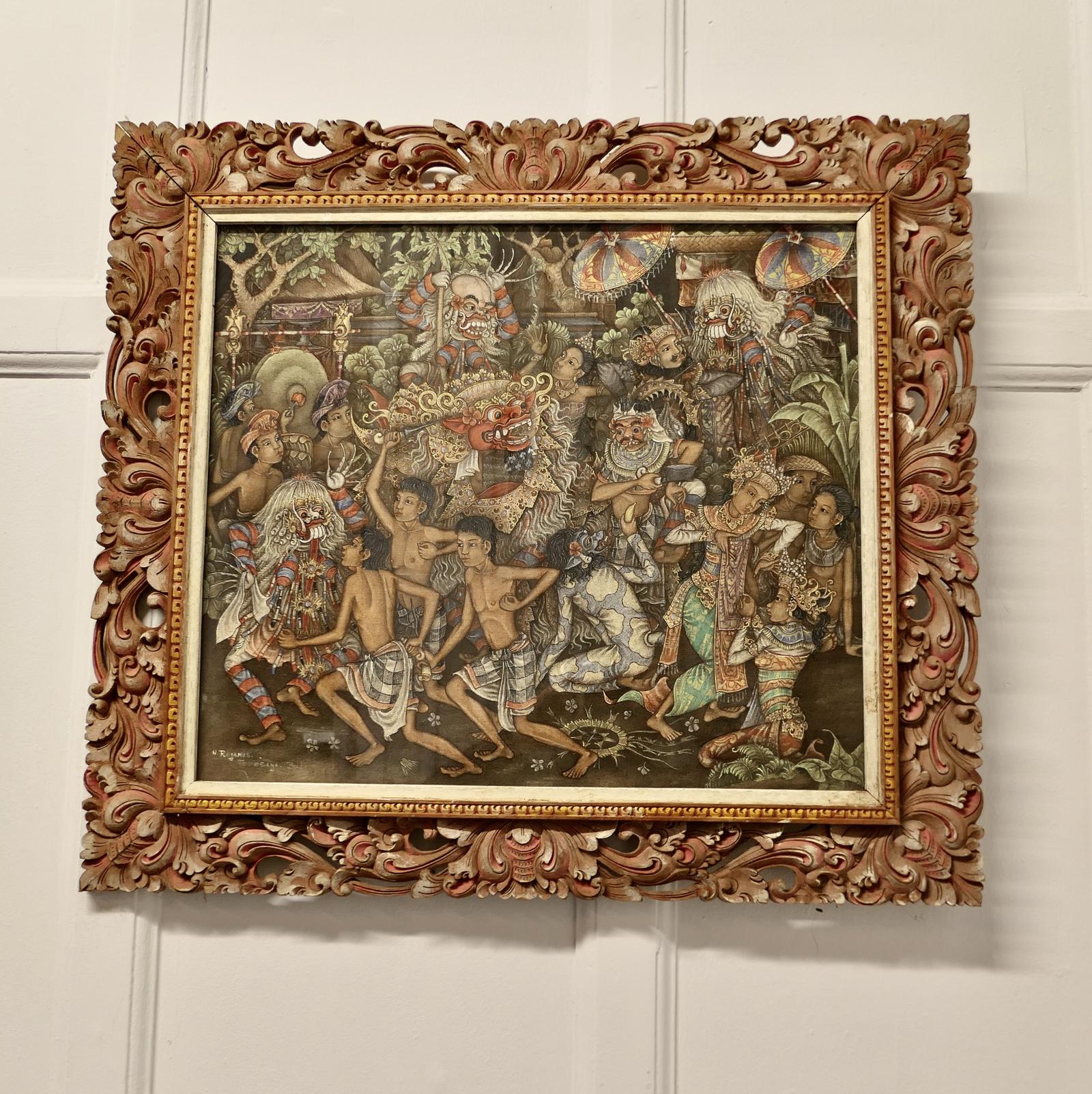 Mythical Balinese Painting in Carved Frame by W Rejamus