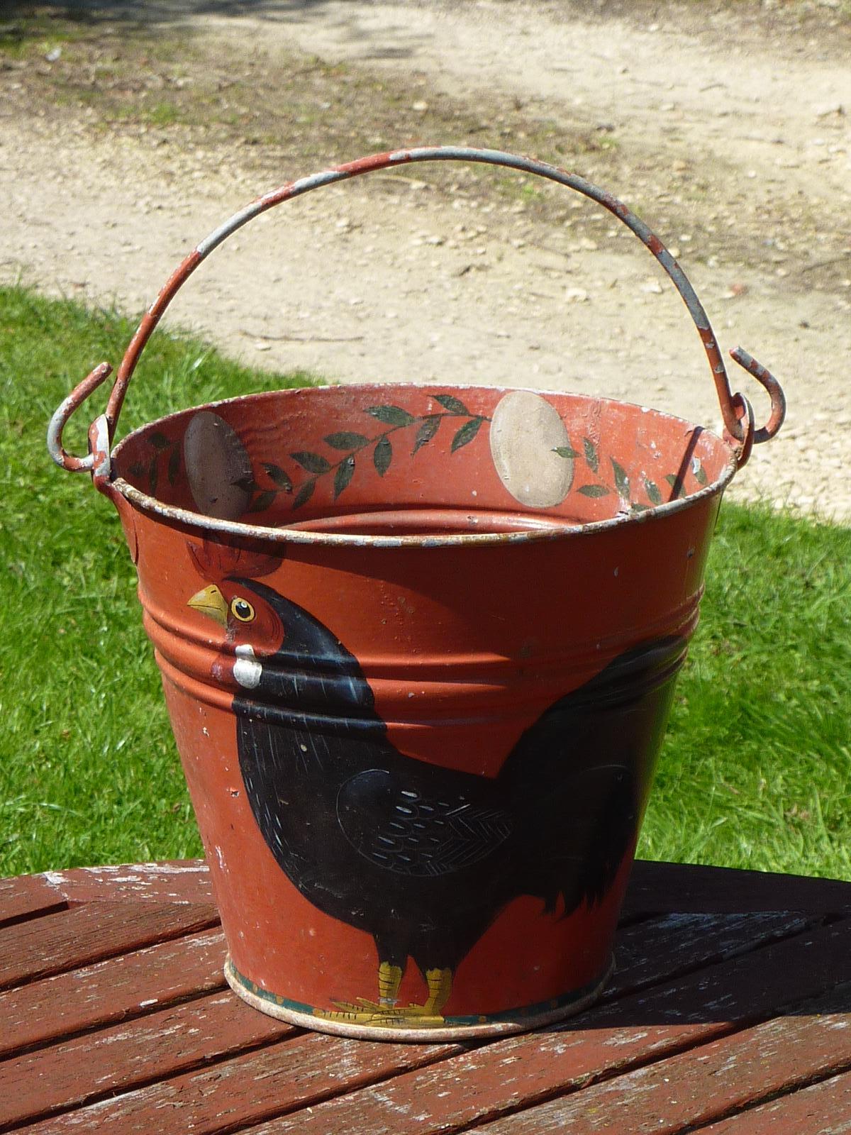 Naive Folk Art Style Painted Metal Egg Pail