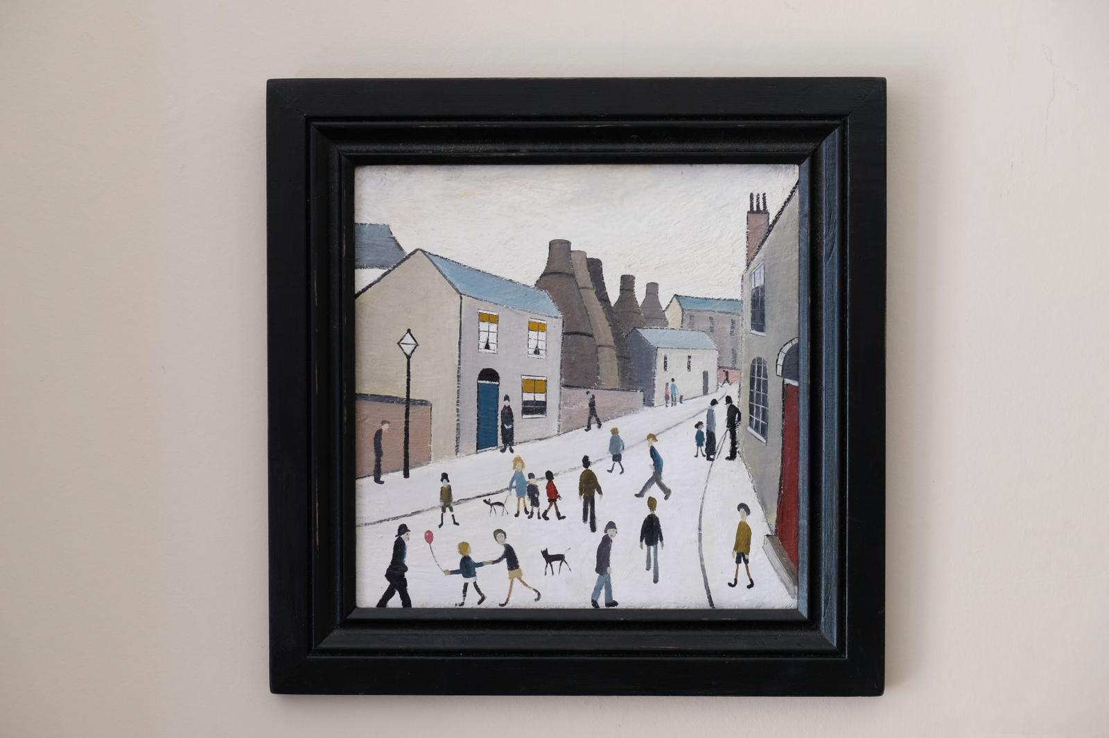 Naive Industrial Street Scene Oil on Board by Walker Scott