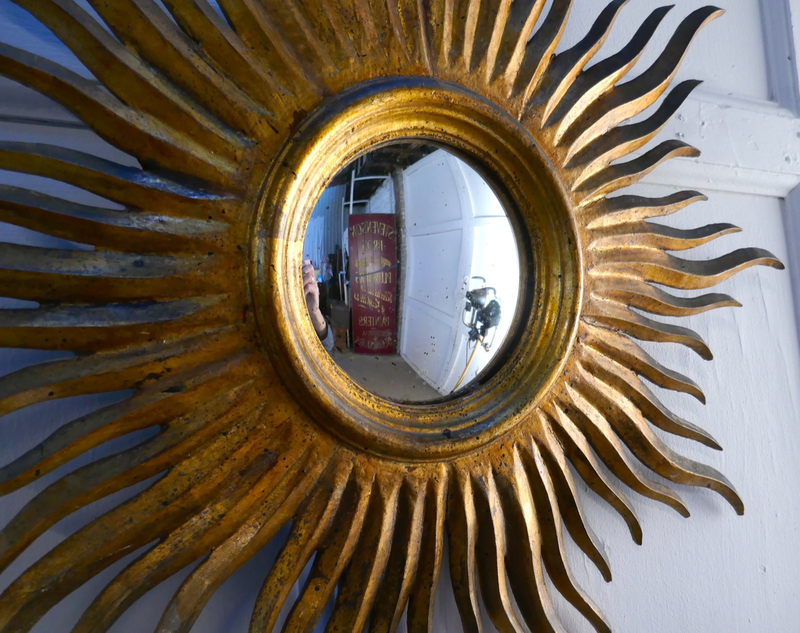 Napoleon III French Carved Wood Sunburst-Starburst Convex Gilt Mirror