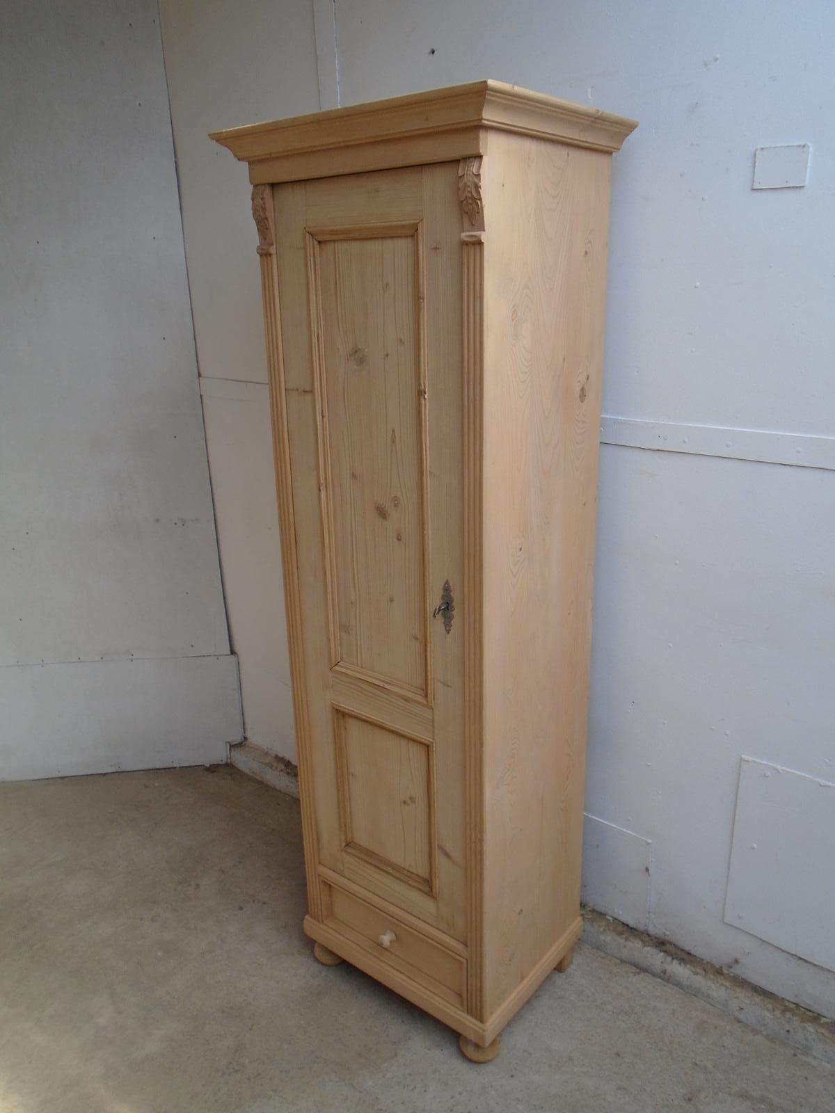 Narrow 1 Door 1 Drawer Antique Pine Storage Cupboard to wax / paint
