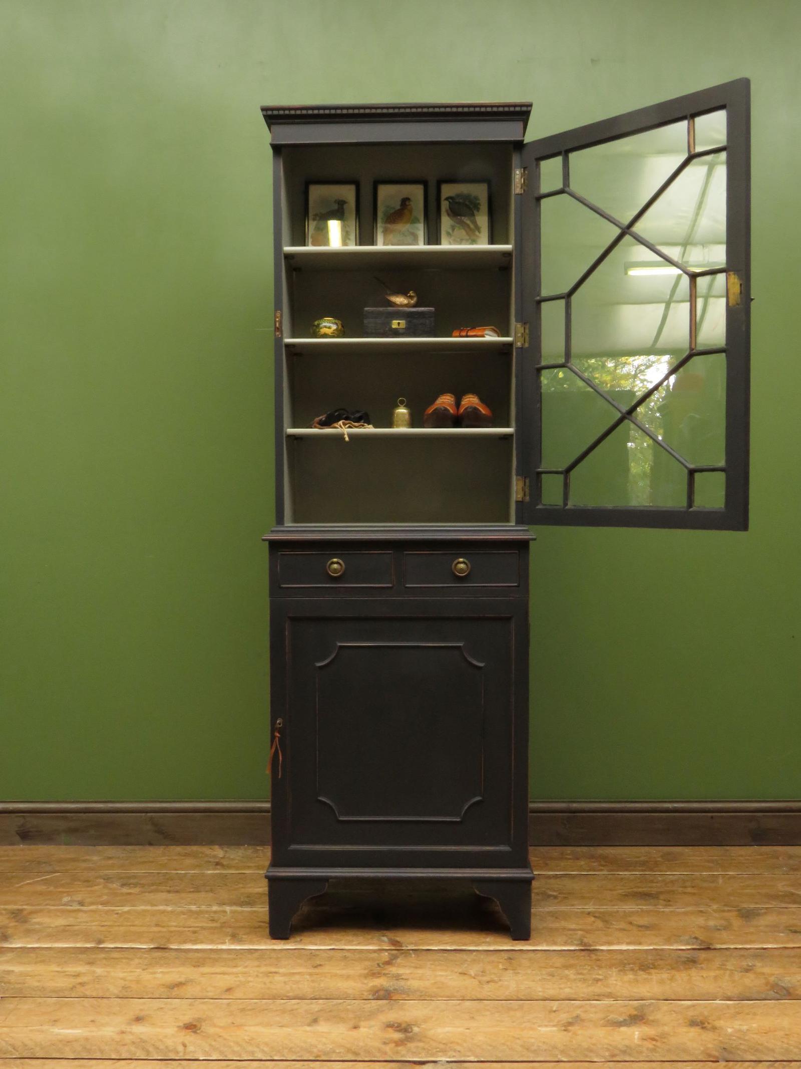 Narrow Black Display Cabinet Bookcase, adjustable shelves, lockable, gothic