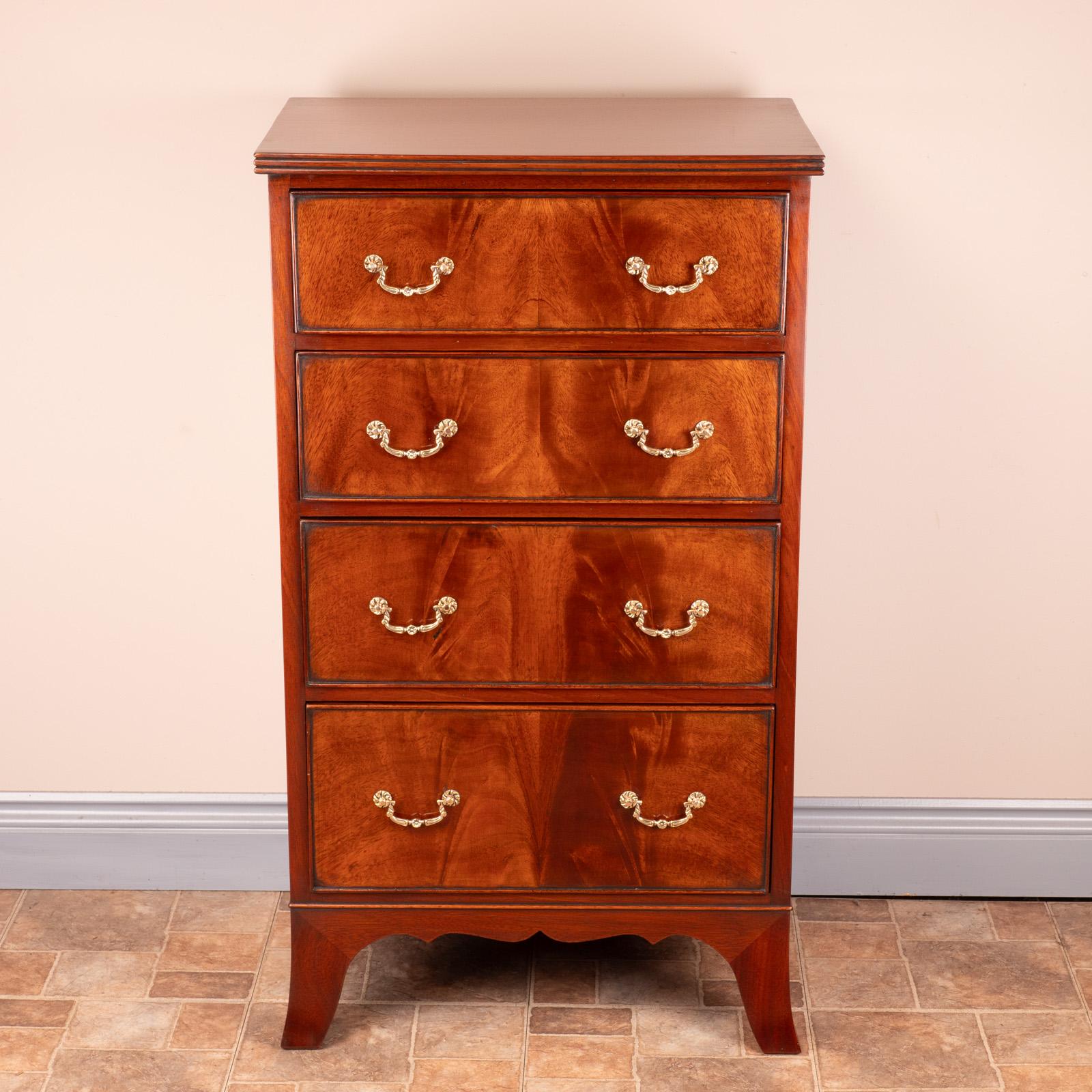 Narrow Mahogany Four Drawer Chest of Drawers