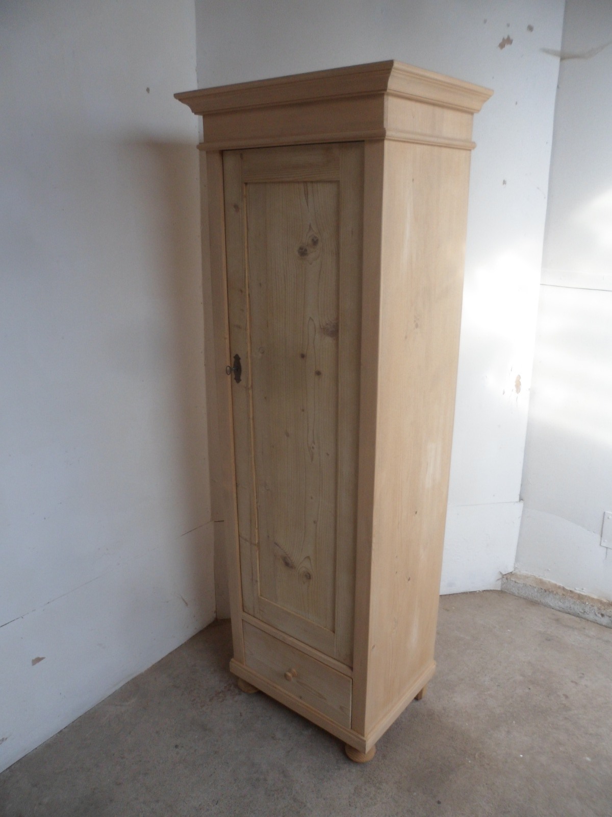 Narrow Old Pine 1 Door Linen Storage Cupboard to wax / paint