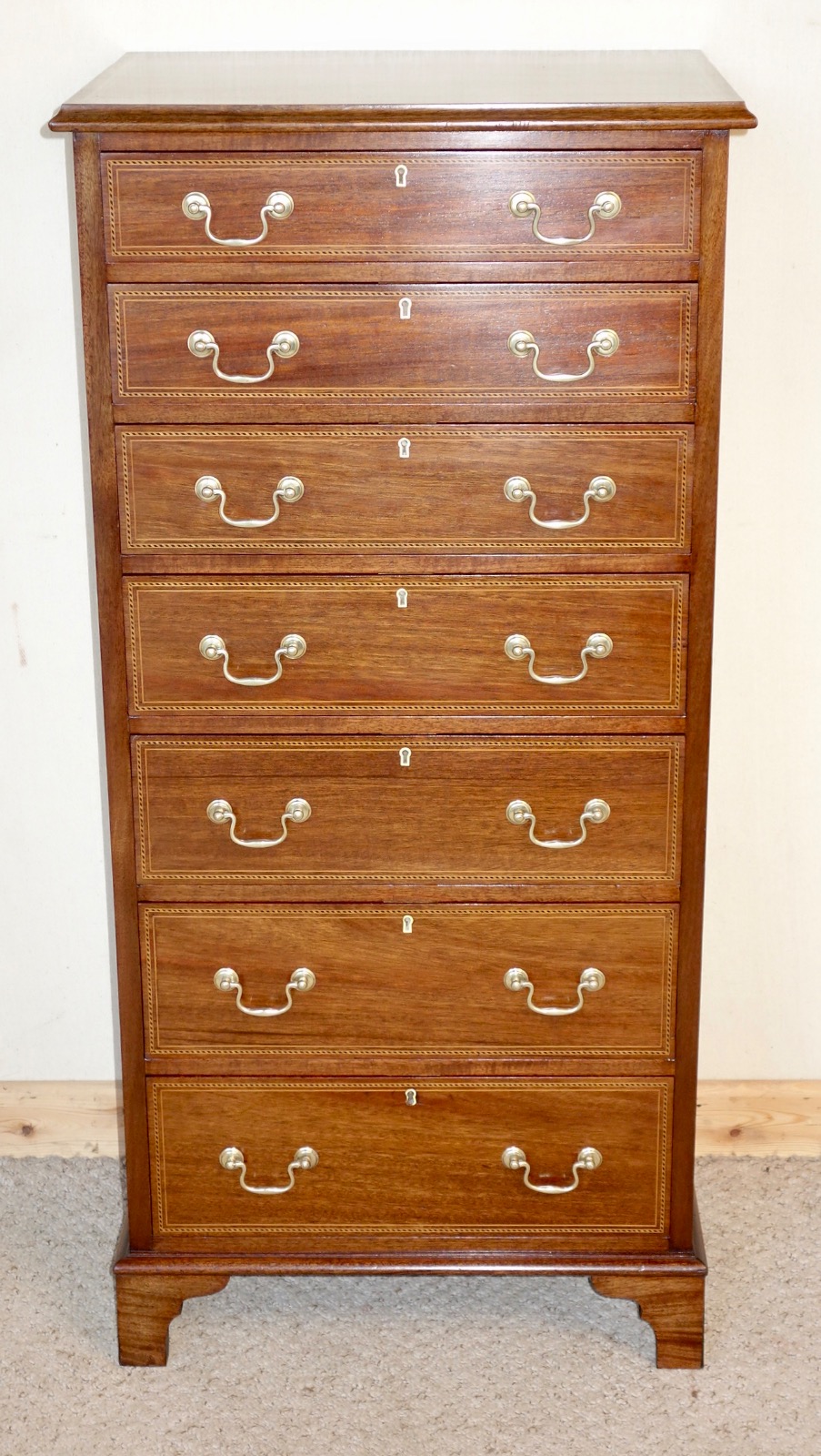 Narrow Pillar Edwardian Mahogany Chest of Drawers (1 of 1)