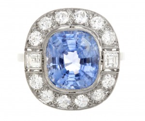 Natural Ceylon Sapphire & Diamond Ring c.1930