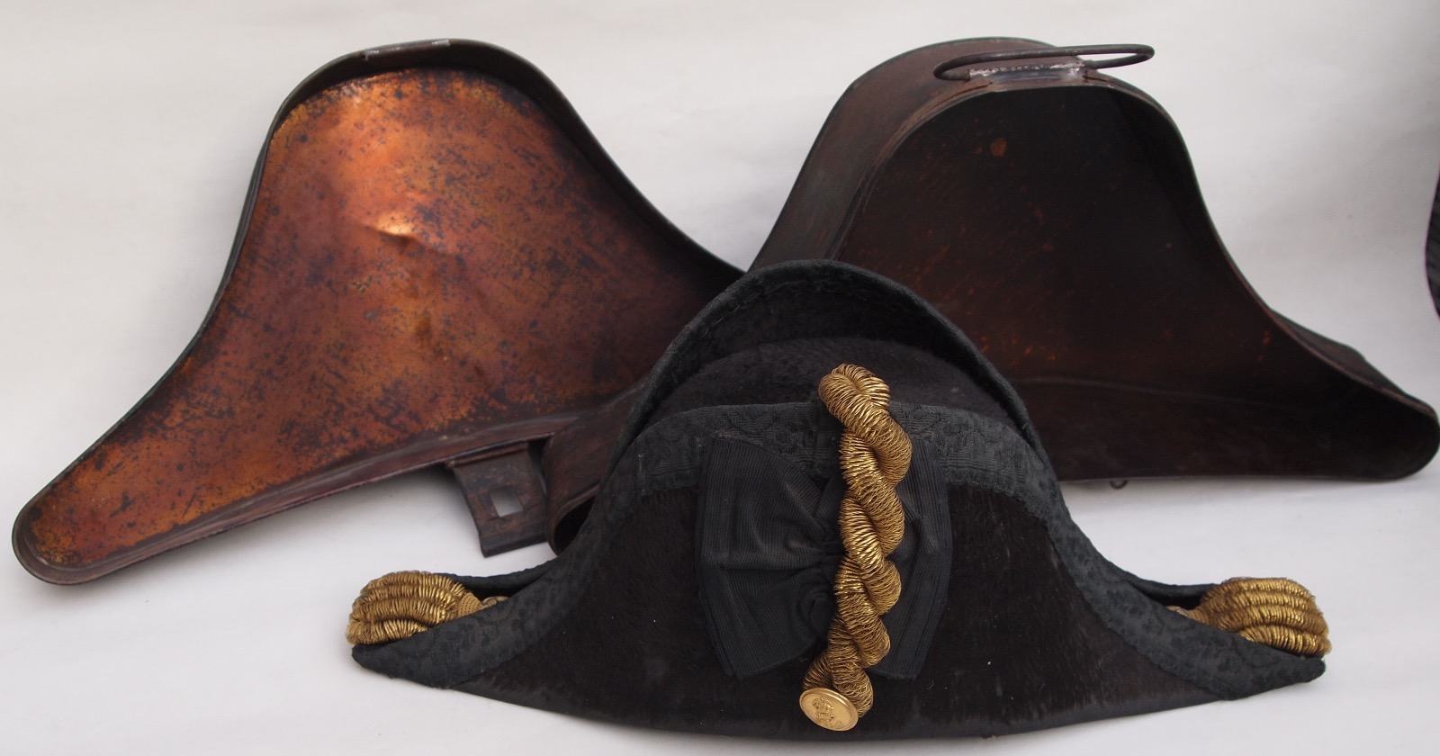 Naval Lieutenant's Bicorn Hat & Tin Hat Box c.1900