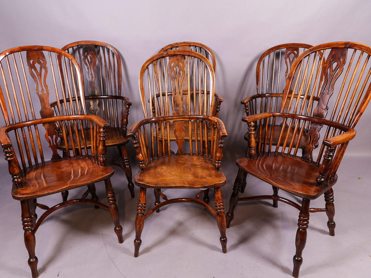 Near Matching Set of 6 Yew Tree Windsor Chairs High Back (1 of 1)
