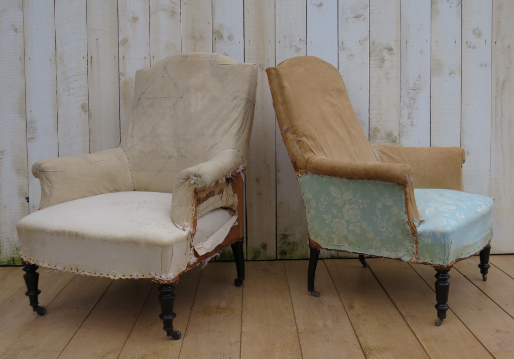 Near Pair Antique Napoleon III Armchairs For Re-Upholstery.