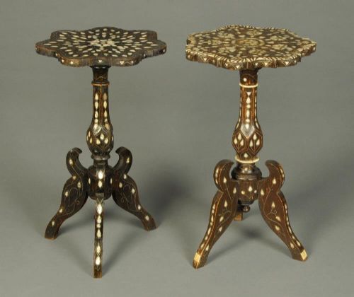 Near Pair of 19th Century Eastern Mother of Pearl Inlaid Tripod Tables (1 of 1)