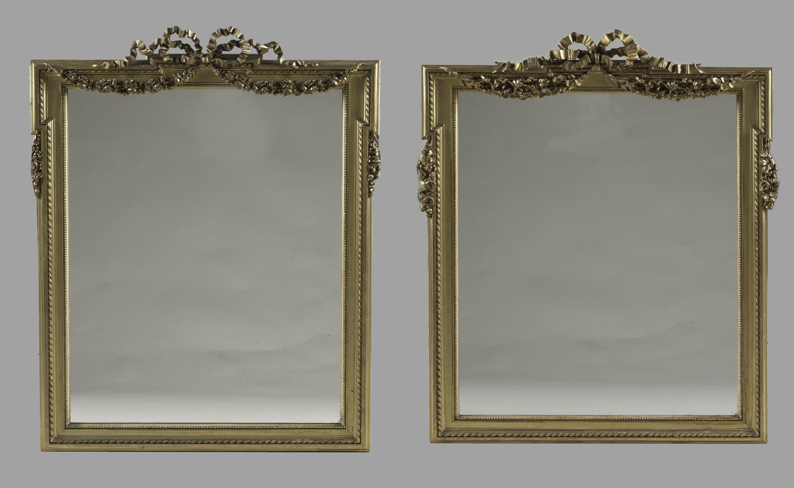 Near Pair of 19th Century French Louis XVI Style Gilt Overmantle Mirrors (1 of 1)