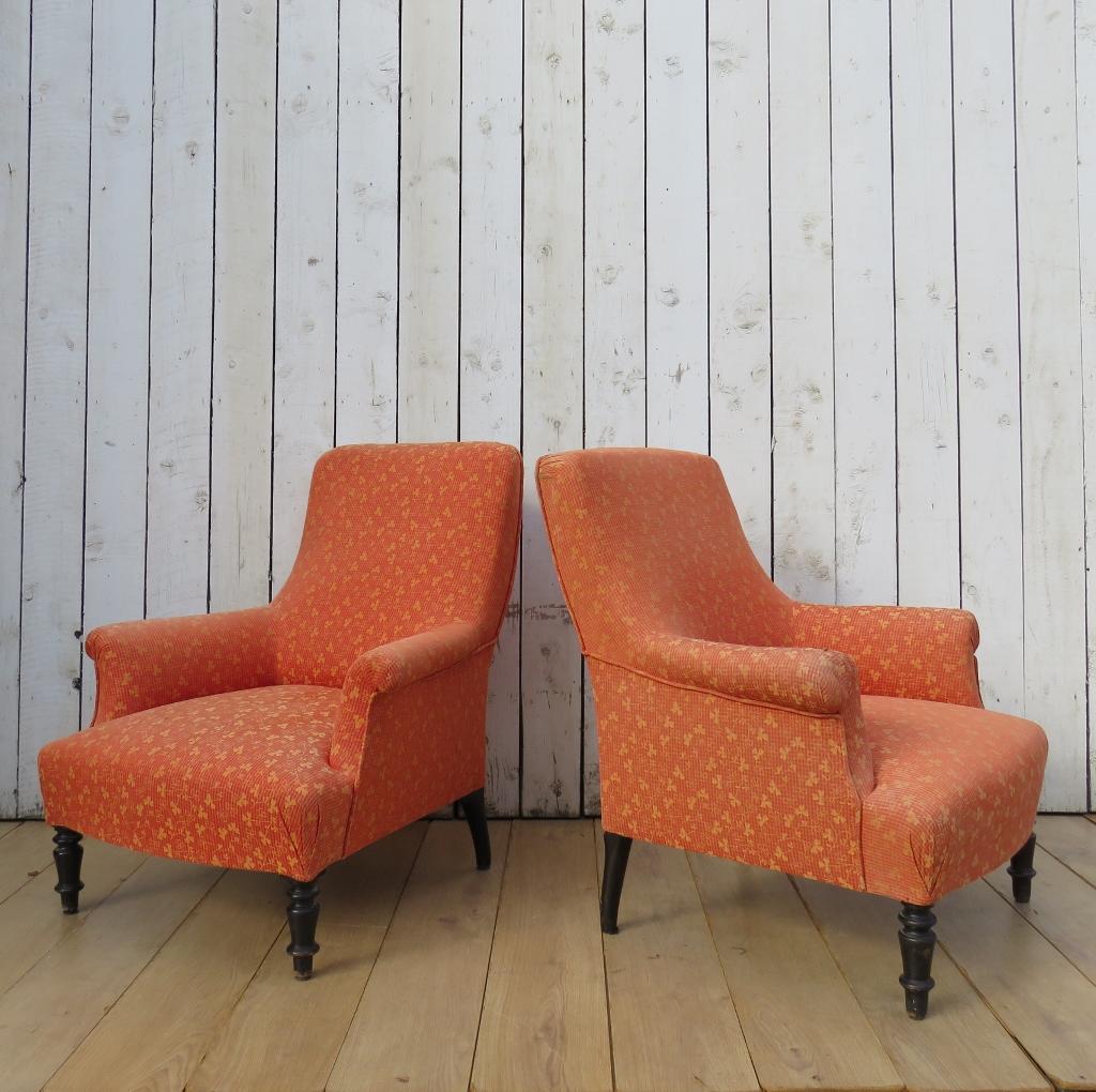Near Pair of Antique French Napoleon III Armchairs