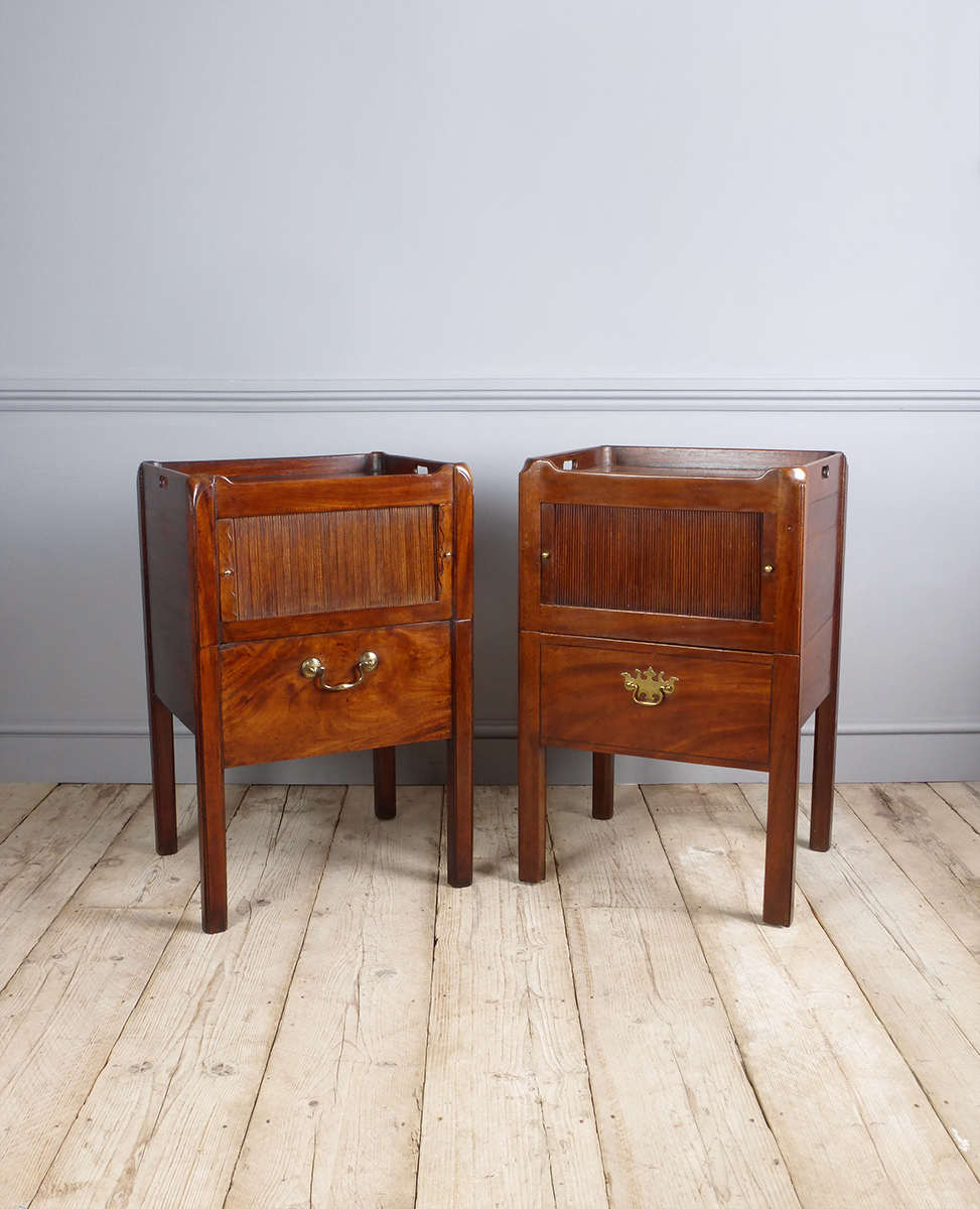 Near Pair of Georgian Mahogany Tray Top Commodes