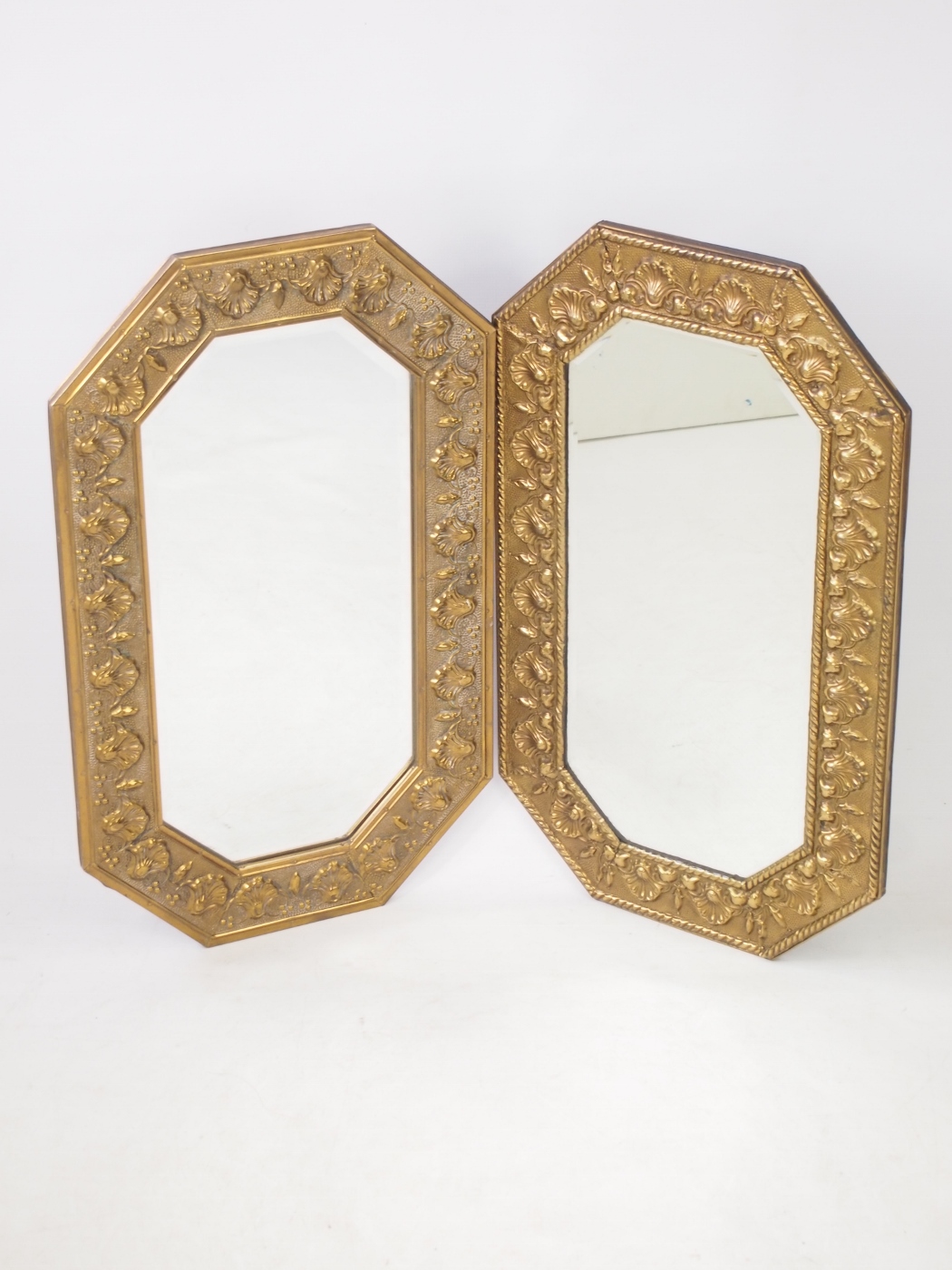 Near Pair of Pressed Brass Framed Wall Mirrors (1 of 1)