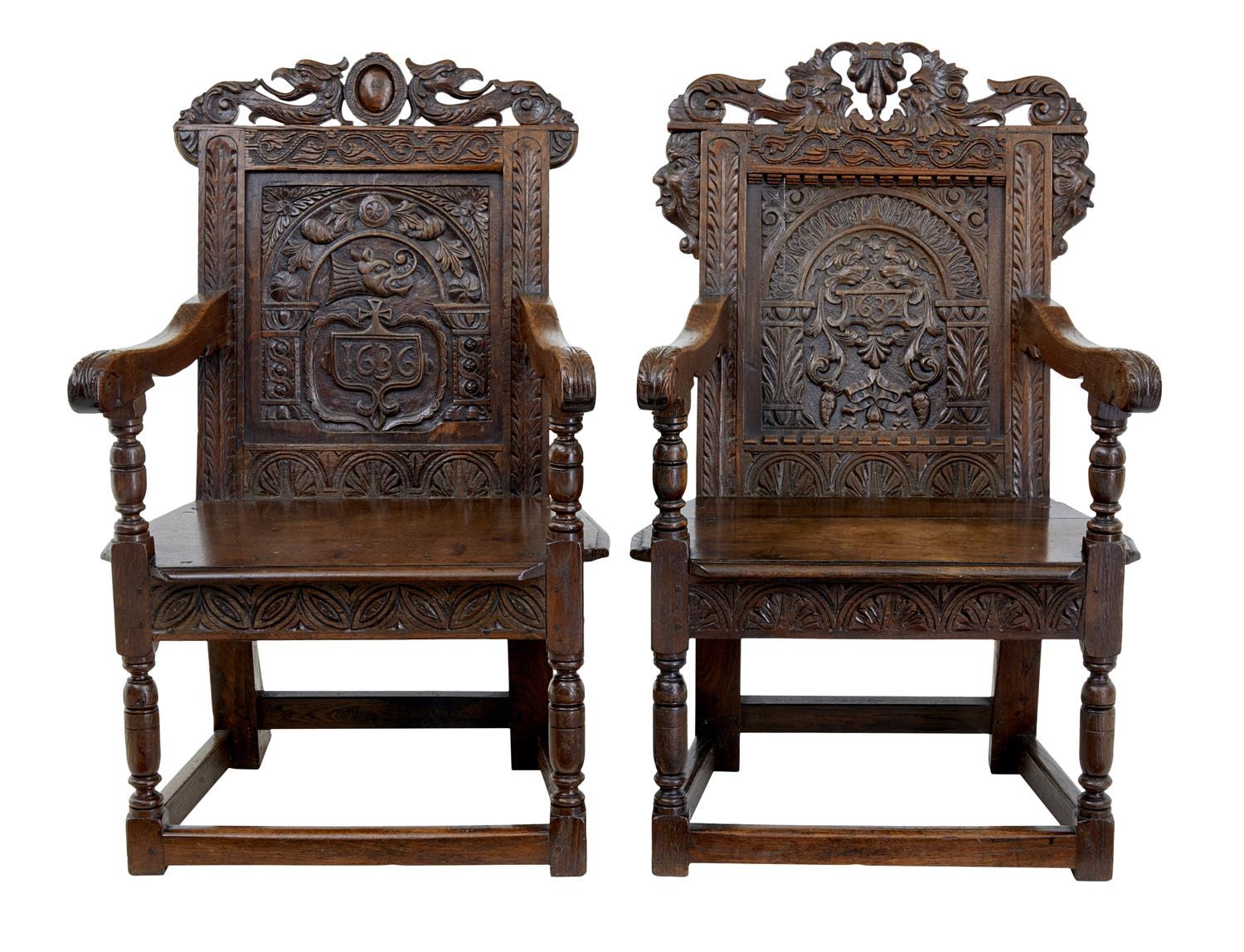 Near Pair of Stunning 19th Century Oak Wainscot Chairs (1 of 1)