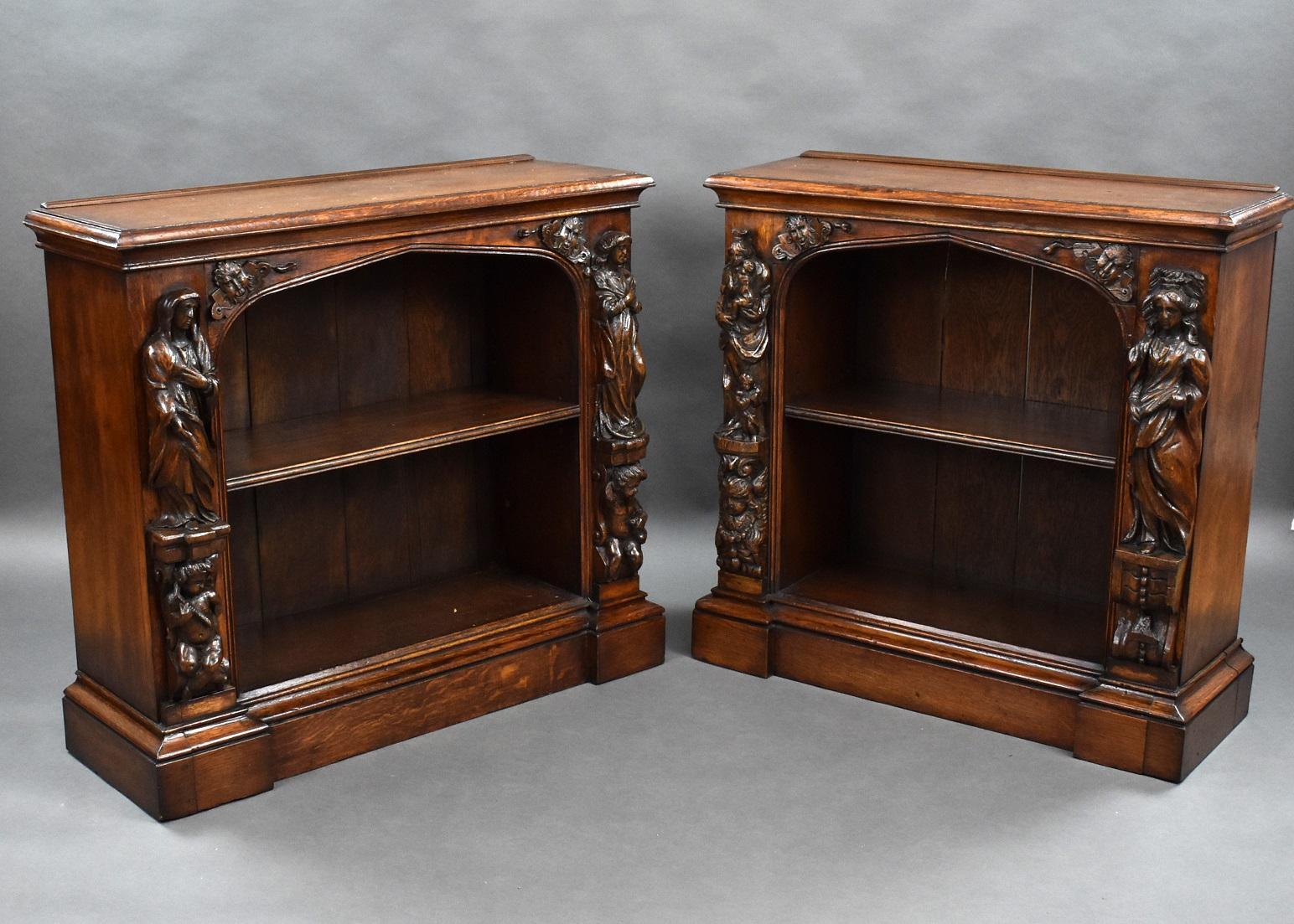Near Pair of Victorian Oak Open Bookcase