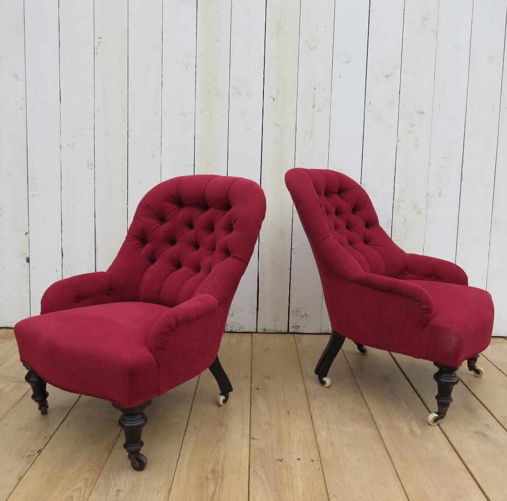 Near Pair of Victorian Slipper Boudior Chairs