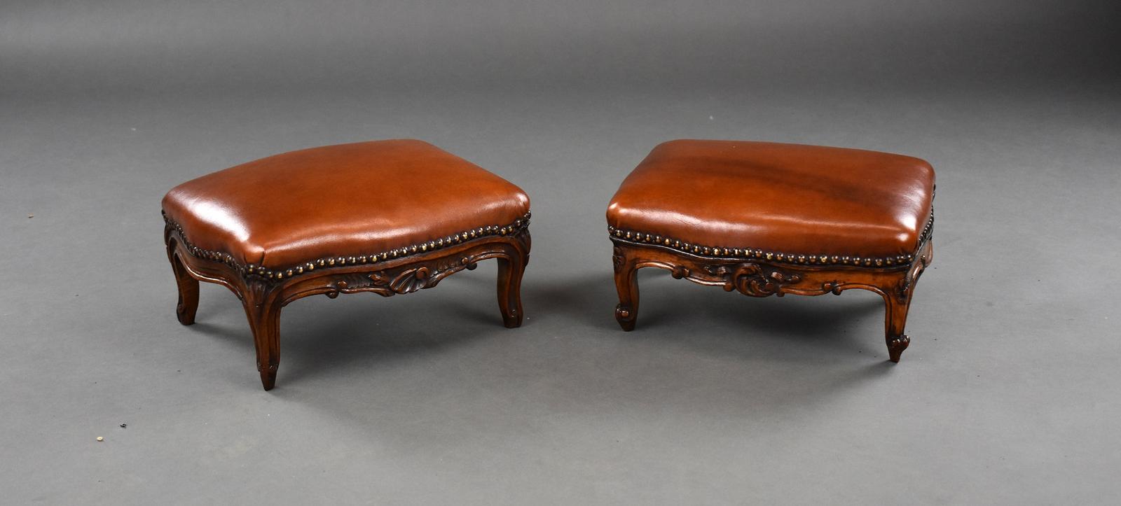 Near Pair Victorian Walnut Footstools