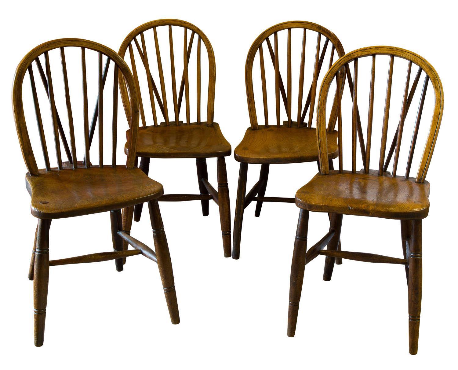 Near Set of 4 Ash & Elm Hoop-Back Windsor Chairs