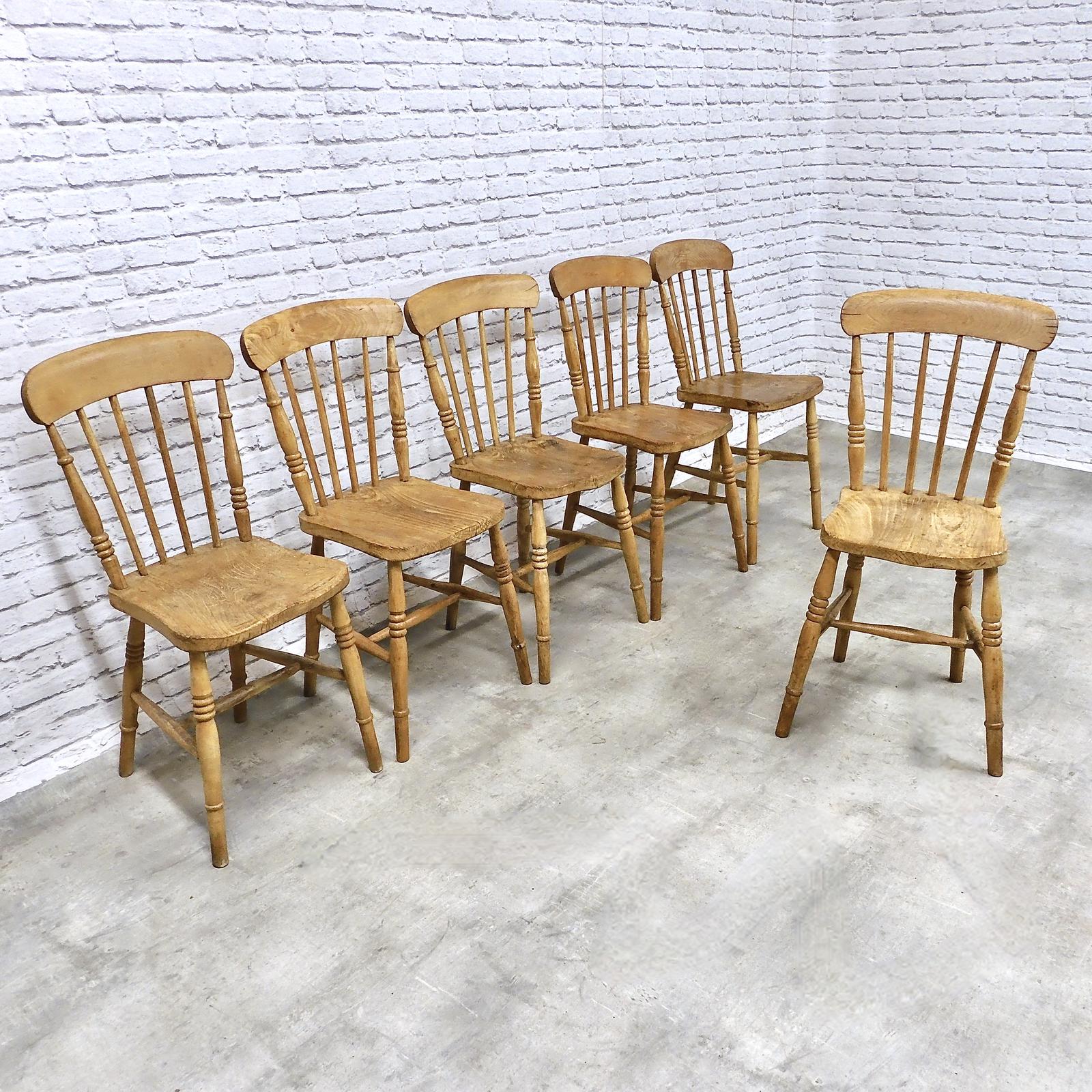 Near Set of 6 Windsor Stickback Kitchen Chairs