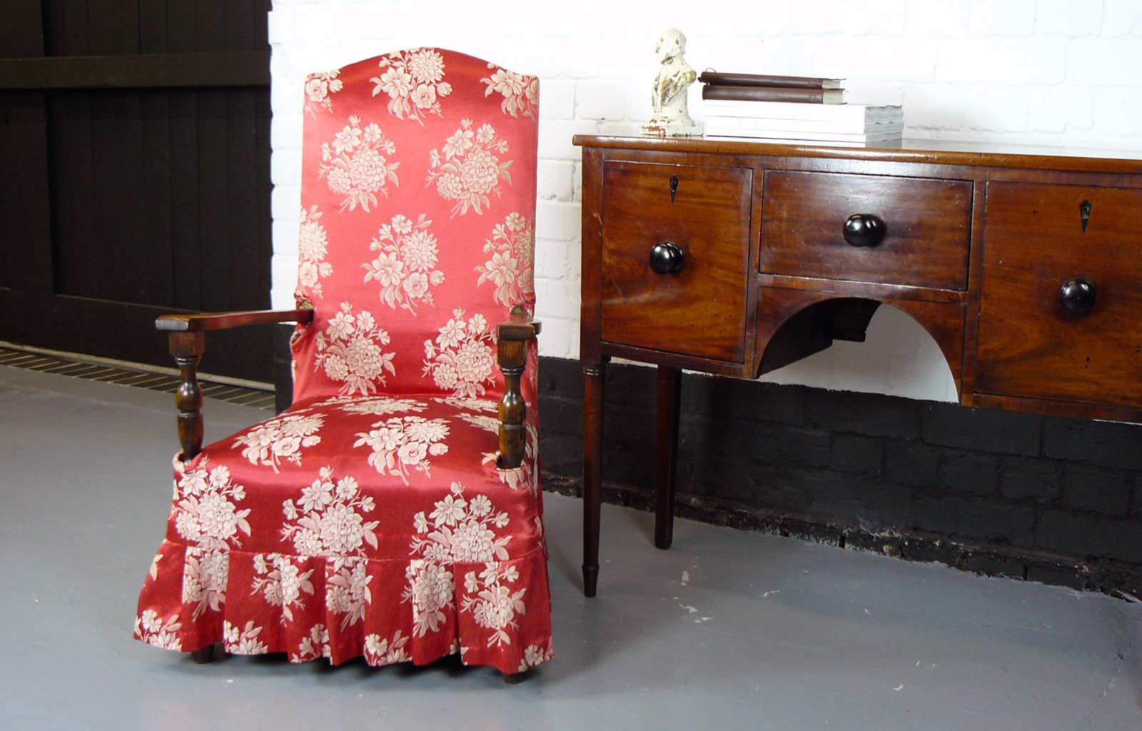 Neat Size 1920s Oak Armchair Great Red Chintzy Loose Covers