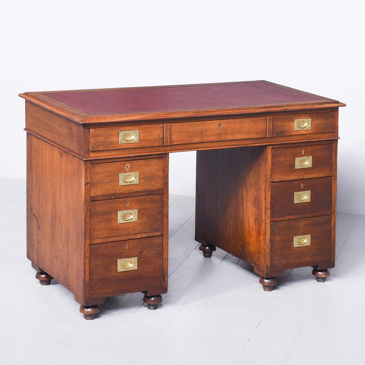 Neat Sized Victorian Mahogany Campaign Kneehole Desk