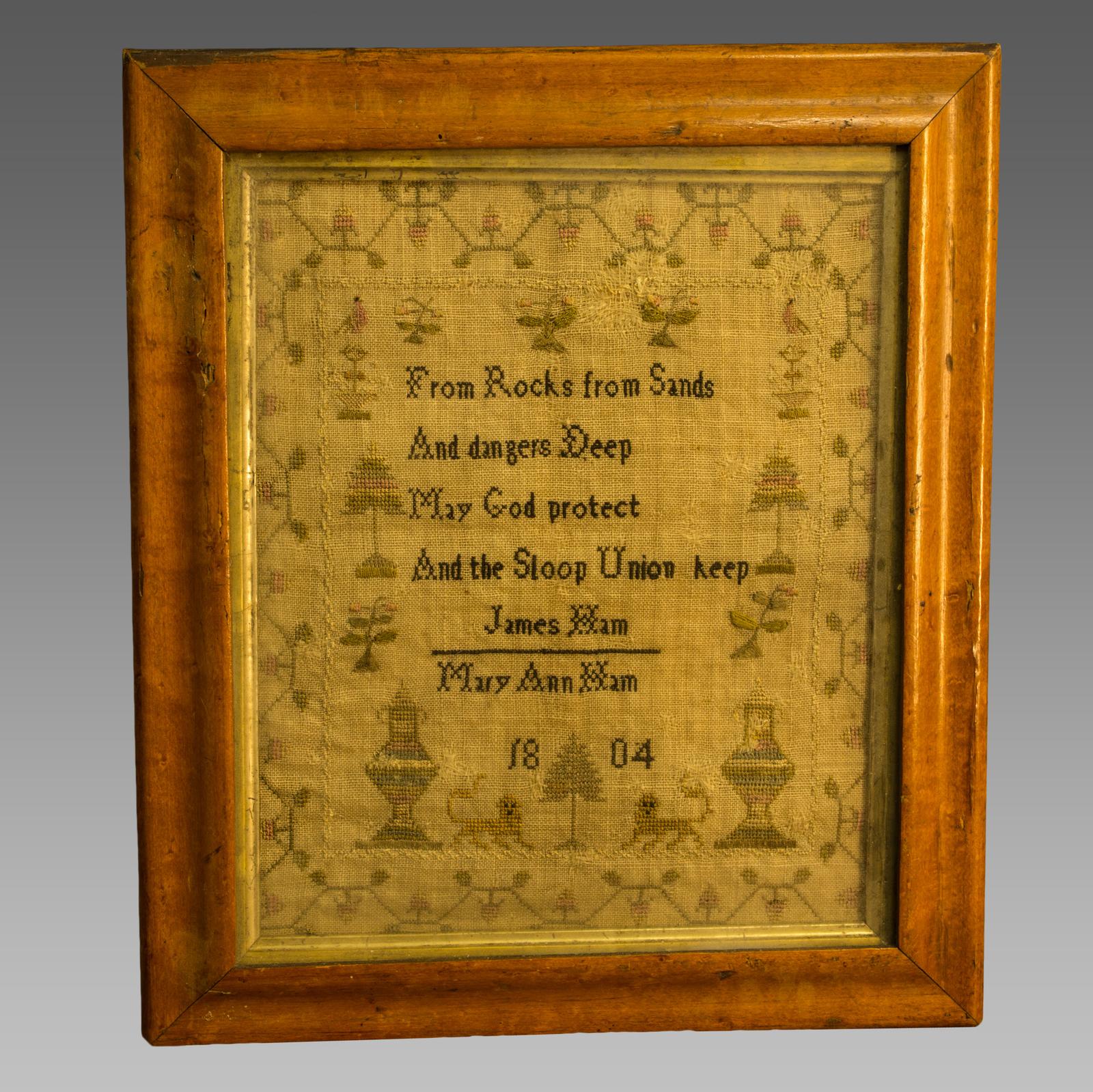 Needlework Sampler. Dated 1804. Maritime Interest