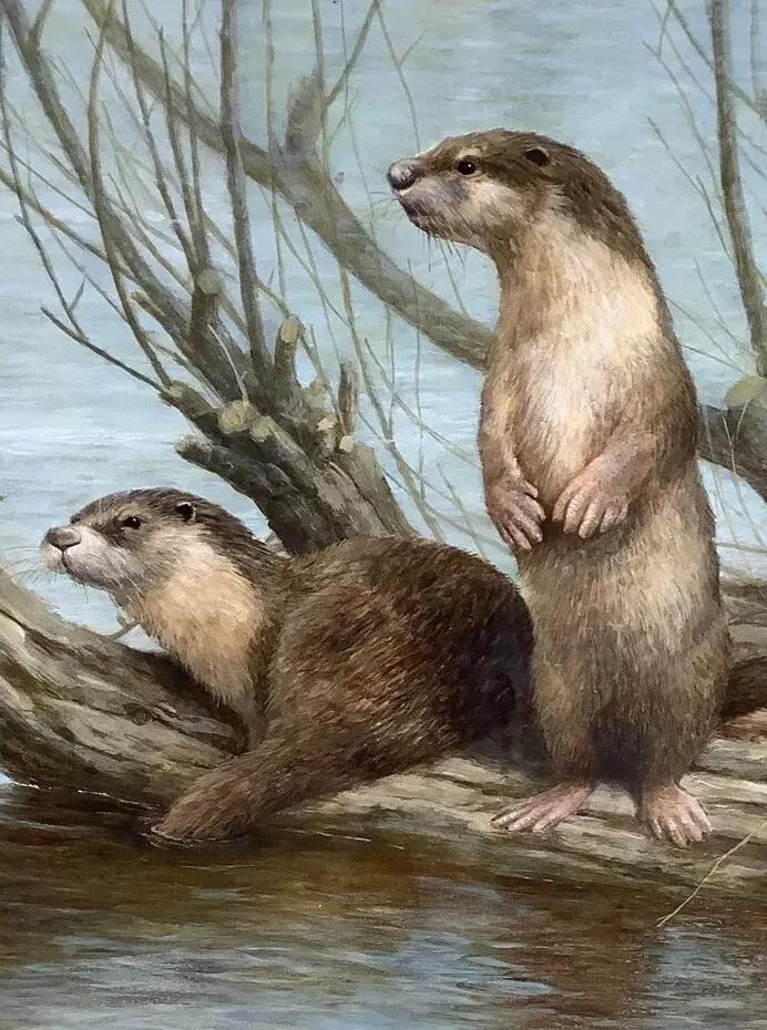 Neil Cox - Fine Quality Original Watercolour - A Pair of Otters