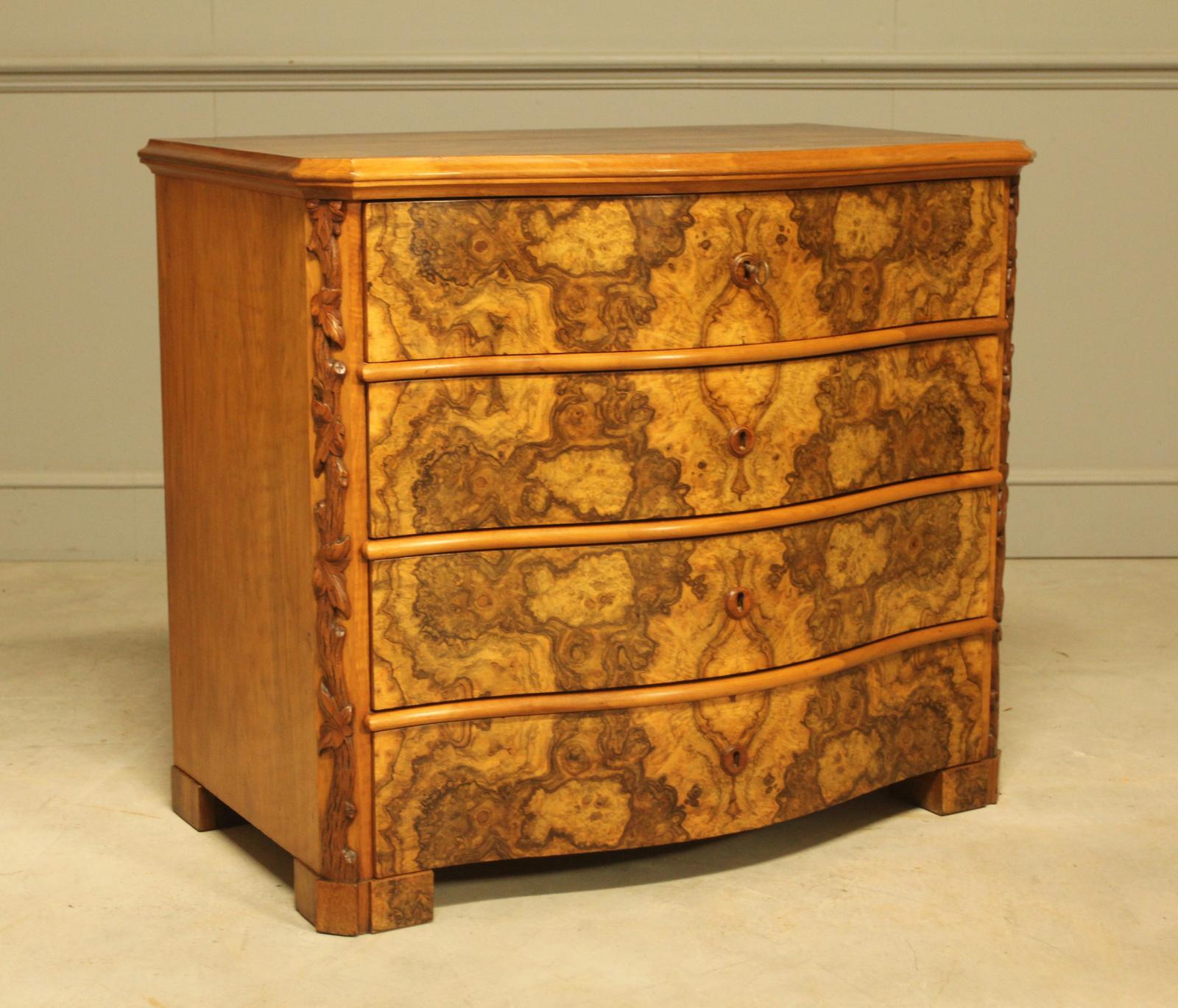 Neo Rococo Swedish Serpentine Burr Walnut Chest of Drawers