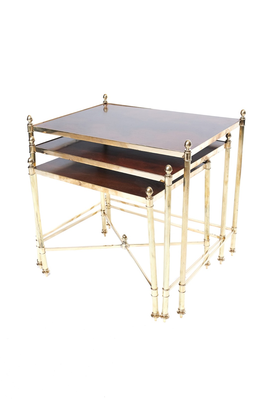 Nest 3 Brass Tables with Mahogany Inset Tops (1 of 4)
