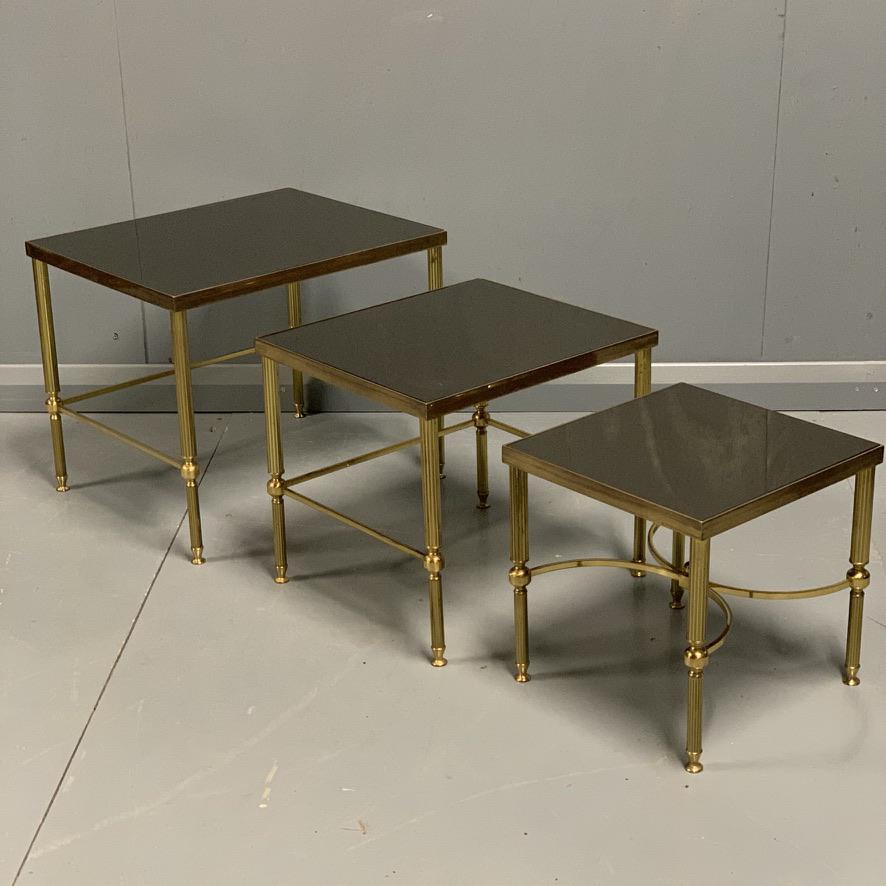 Nest of 3 Brass & Dark Glass Tables (1 of 6)