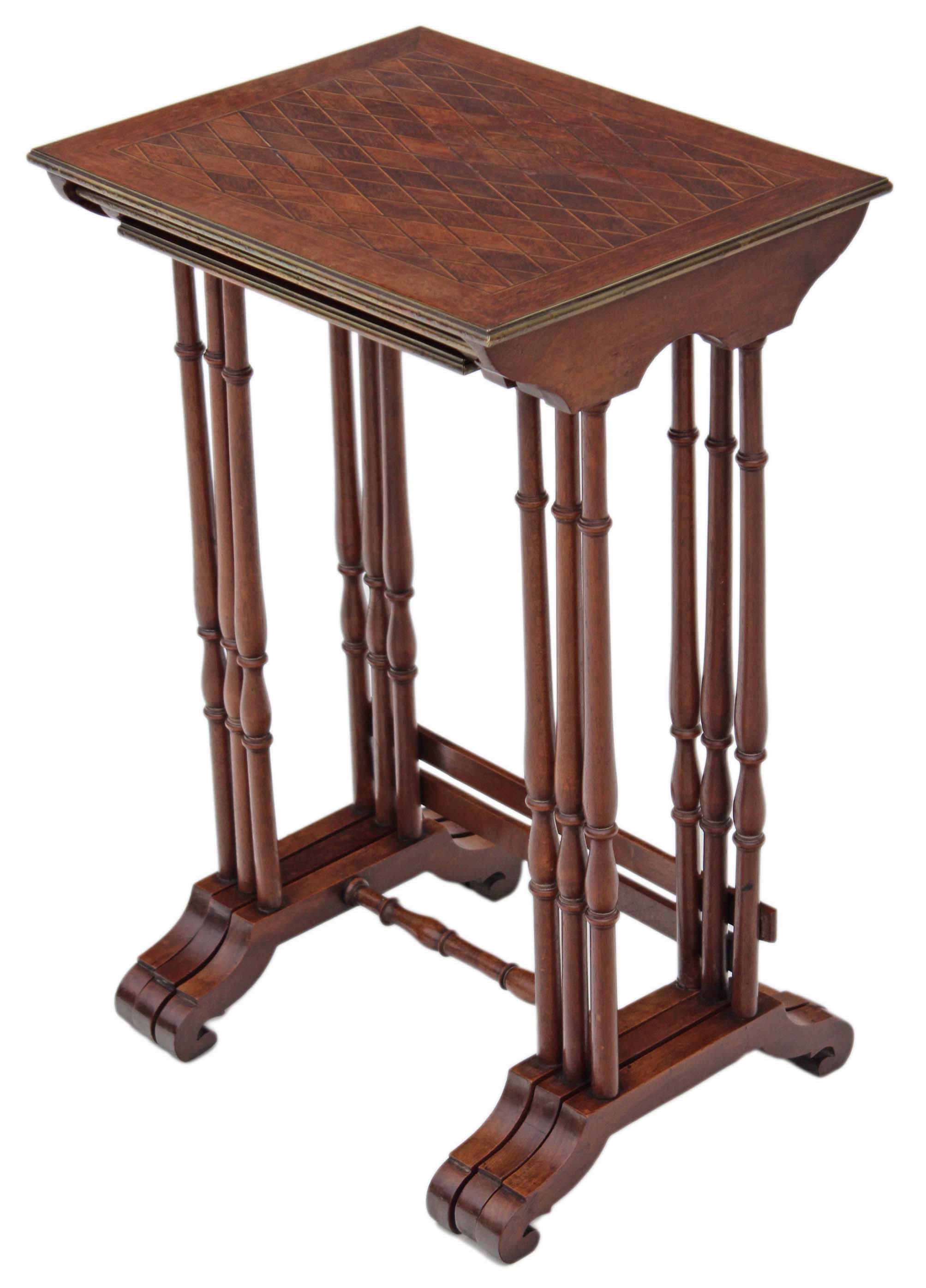 Nest of 3 Mahogany Brass Bound Parquetry Tables / Side Tables / Occasional Tables