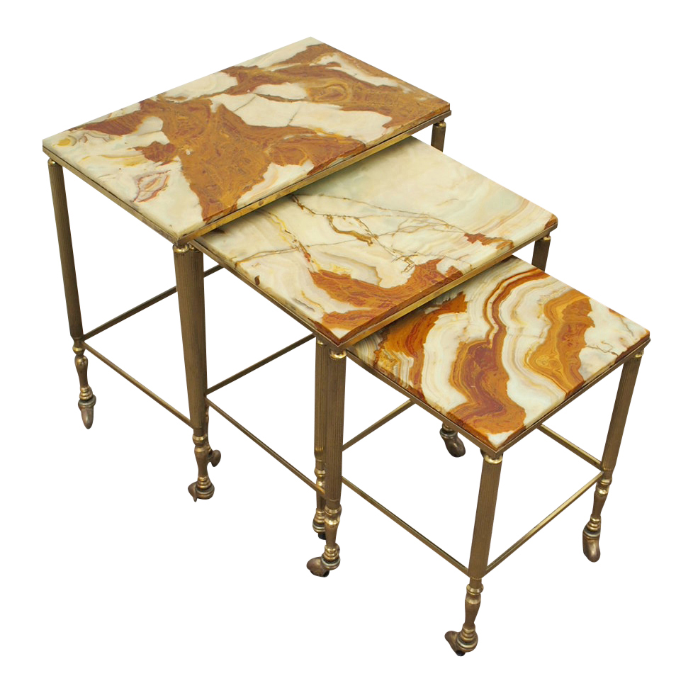Nest of 3 Marble & Brass Occasional Tables (1 of 8)