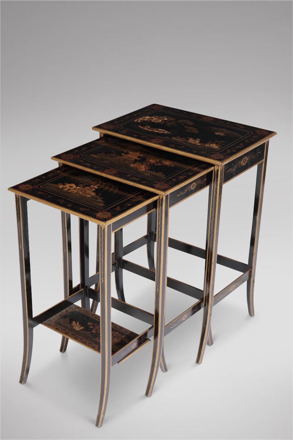 Nest of Three Black Lacquered Tables