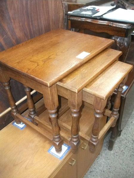 Nest of Three Solid Oak Occasional Tables
