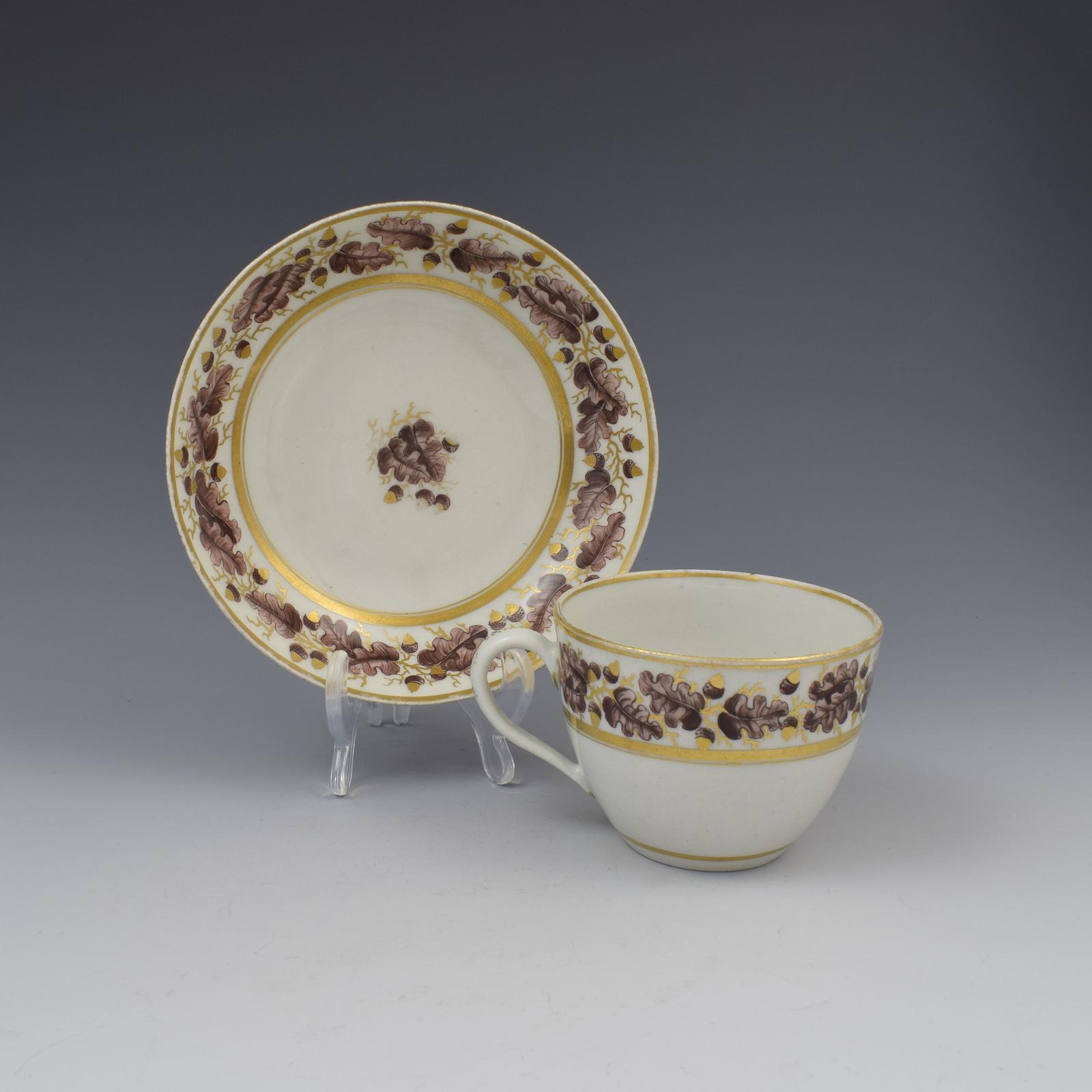 New Hall Porcelain Bute Cup & Saucer Pattern 302 Oak Leaves c.1800
