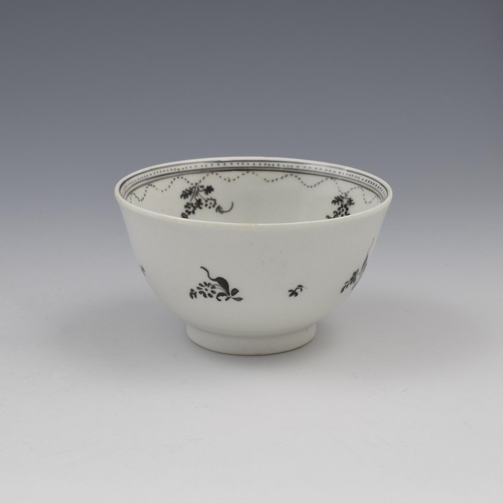 New Hall Porcelain Tea Bowl Pattern 308 Black Enamel Flower Basket c.1790-1800 (1 of 8)