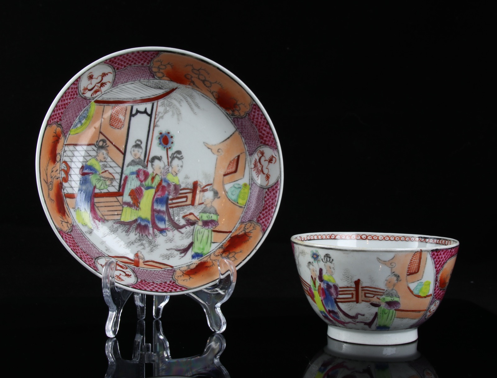 New Hall Porcelain Tea Bowl & Saucer Pattern no 621 Dinner is Served c.1795-1800
