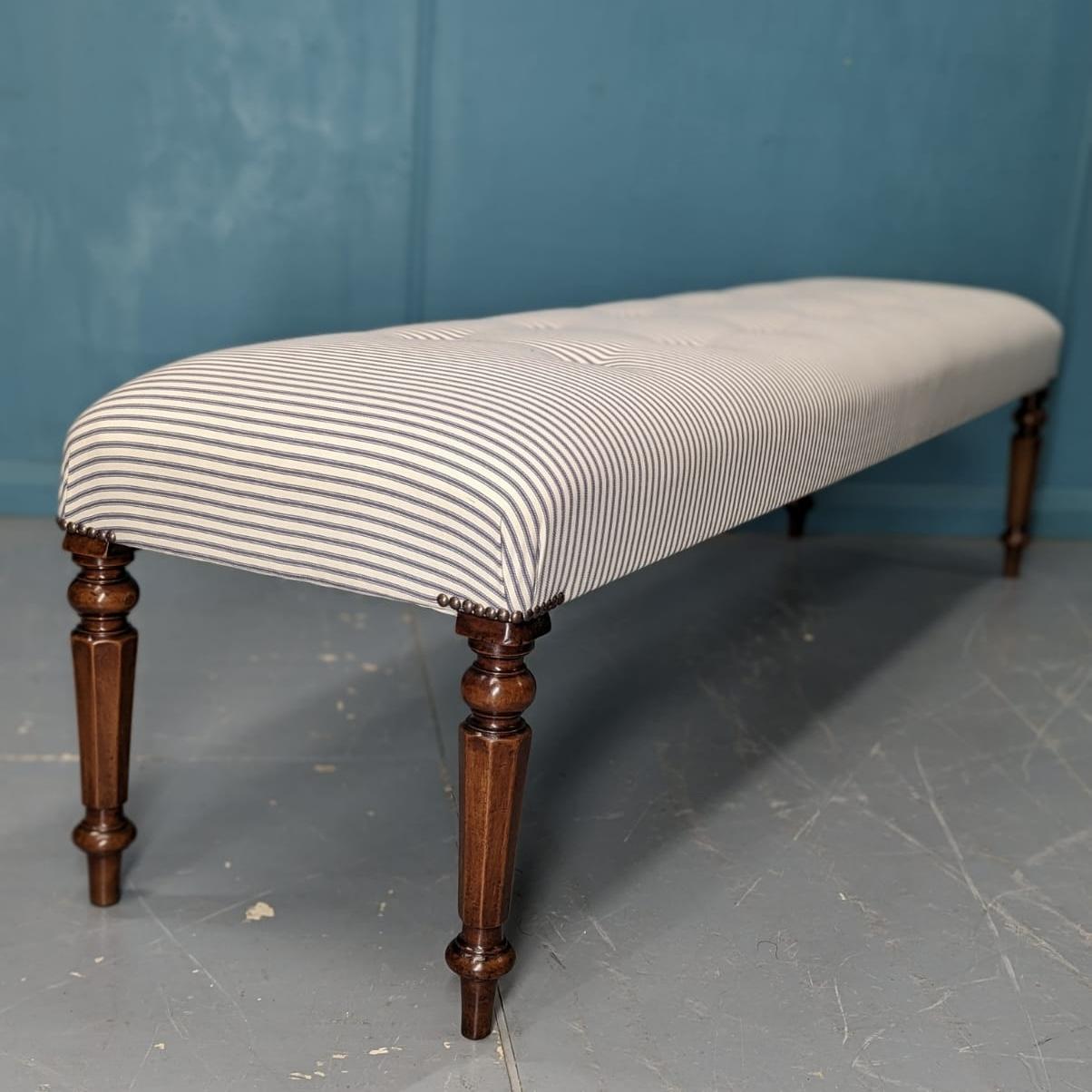 Newly Upholstered 6ft Long Stool in Buttoned Ticking (1 of 7)