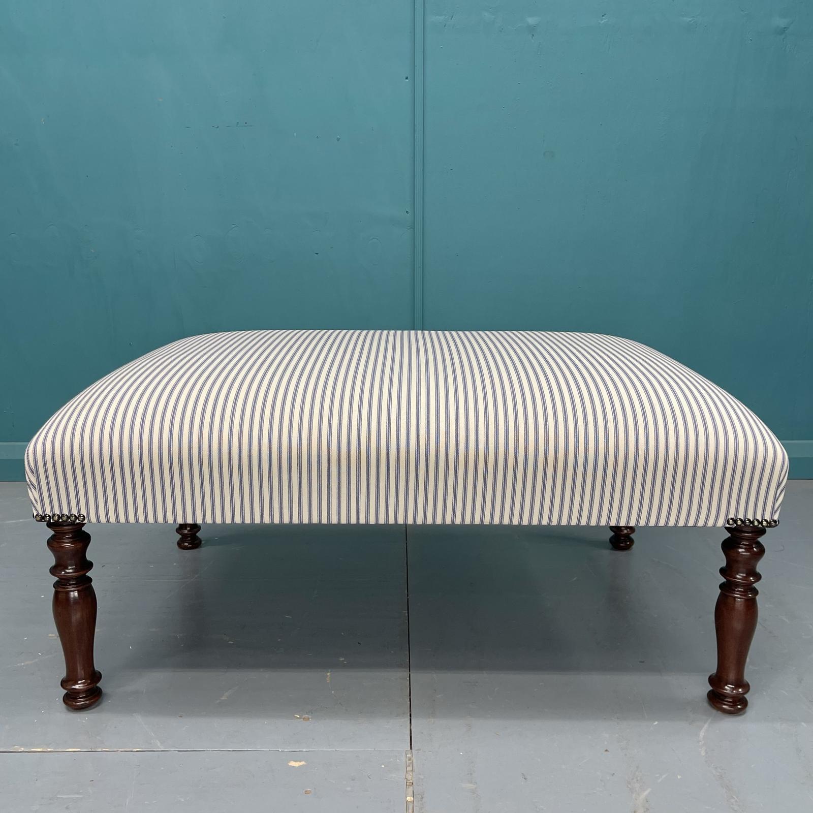 Newly Upholstered Blue Ticking Stripe Footstool (1 of 6)