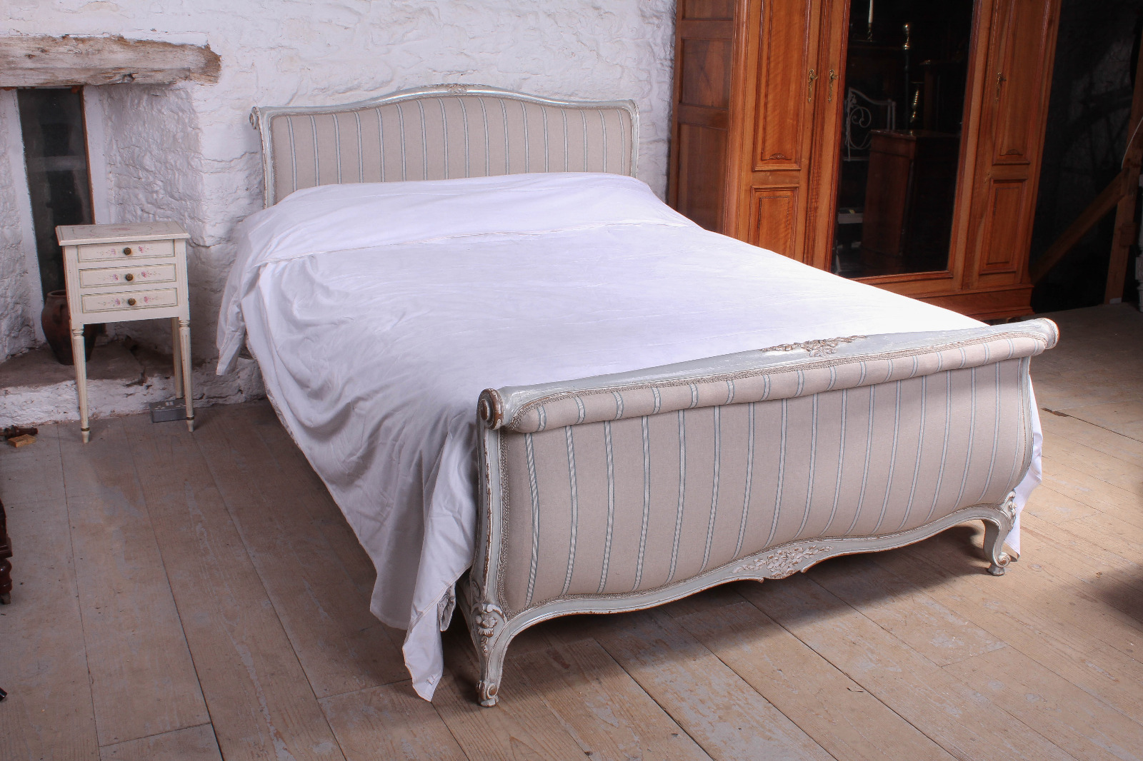 Newly Upholstered Lit Bateau Style King Size Bed